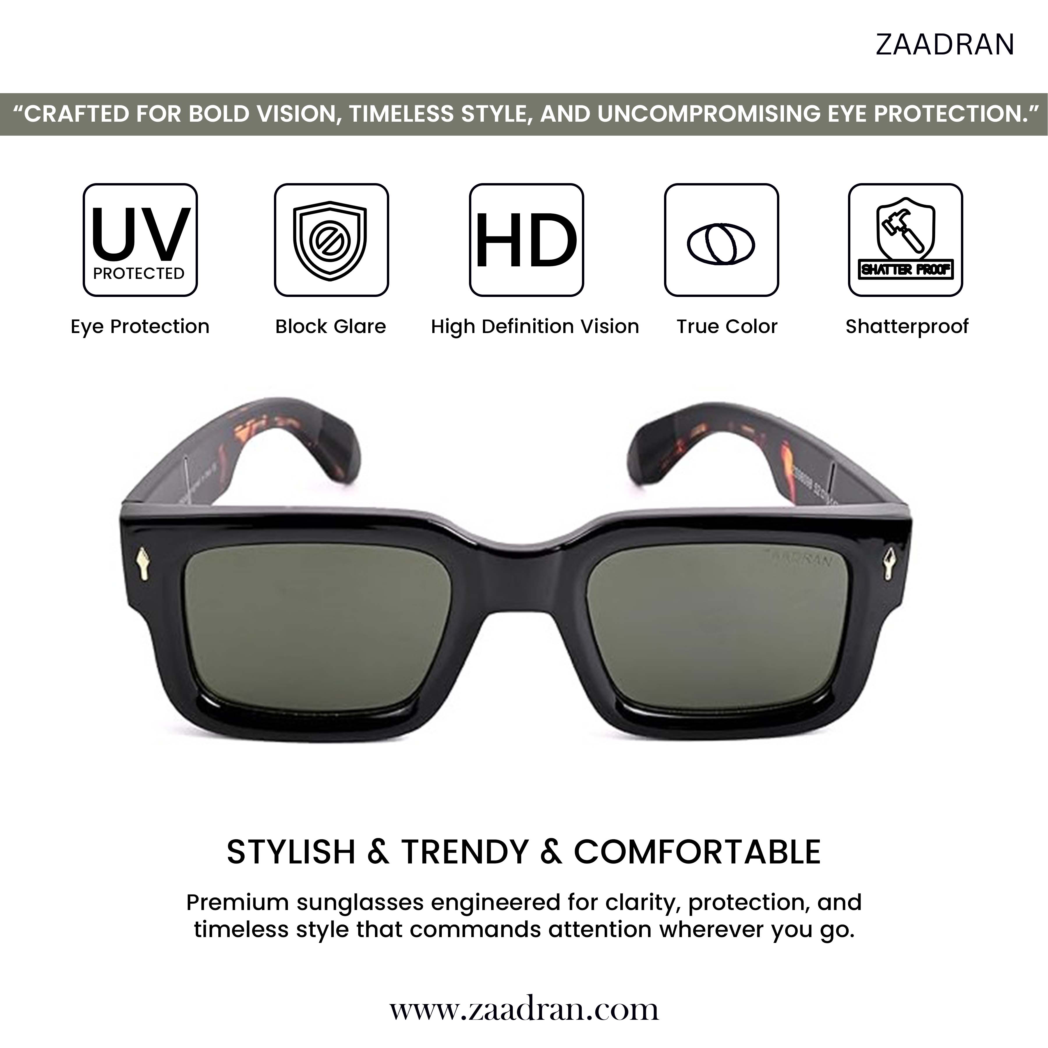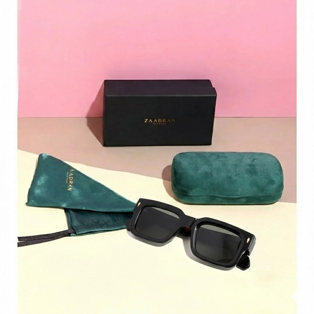 Almaty | Black Green Wayfarer Sunglass - (ZAADWFAMBLKGN0014)